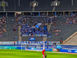 In Berlin angekommen, verschlug uns der Weg in einen netten Biergarten in unmittelbarer Nähe des Stadions, indem wir noch ein bisschen Zeit totschlugen. Im Stadion angekommen wurden dann die verstaubten Banner wieder aus den Taschen geholt und die neue Saison konnte starten!