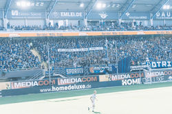 Nach Abpfiff wurde die Mannschaft dann mit Untermalung einiger Fackeln und einem Spruchband für die Gäste aus Brindisi gebührend gefeiert. Als das Material abgebaut und verstaut war, ging es dann noch für einige Jungs in die Stadt. Dort angekommen klang der Abend dann bei kaltem Bier und angenehmen Temperaturen gemütlich aus.