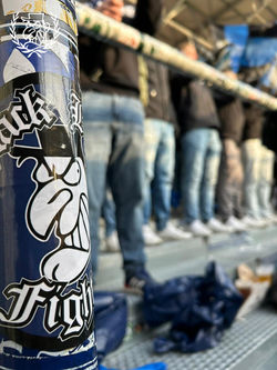 Den Auftakt machte eine sehenswerte Choreo der Supporters, in welcher über dem Block ein großer Wimpel mit dem bekannten Spruch "Kein Star auf dem Feld" zu sehen war. Dazu wurde der Block mit blau-schwarzen Fahnen und Luftballons gefüllt. Starten sollte das Spiel mit der ersten guten Schussgelegenheit von Laurin Curda in der 6. Minute. Der zunächst gute Beginn unserer Elf flachte jedoch schnell ab und so kassierten wir in der 17. Minute das erste Gegentor per Kopf. In der Folge verfestigte sich das Spiel, ohne dass eine der beiden Mannschaften wirklich überzeugen konnte.
